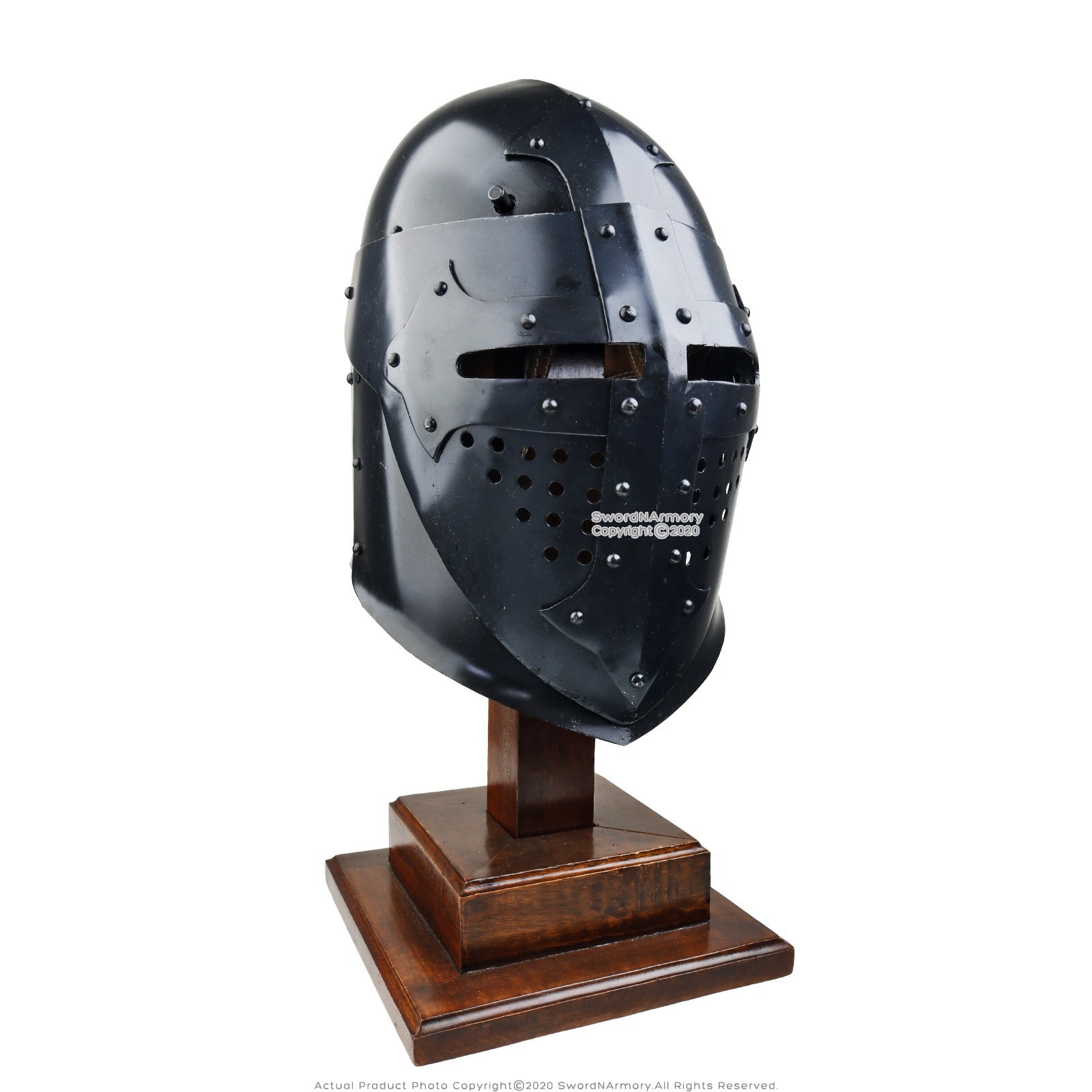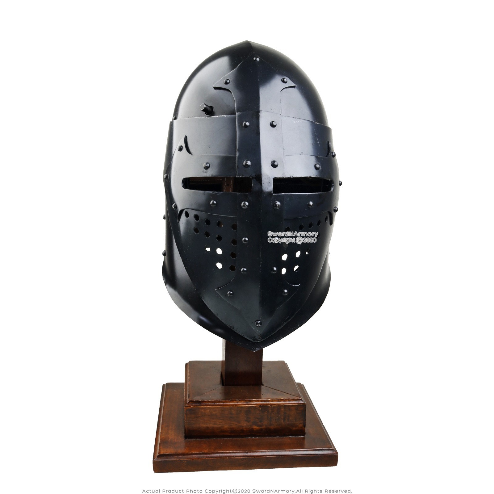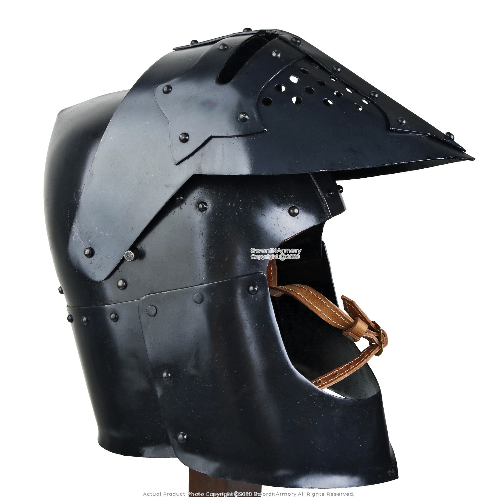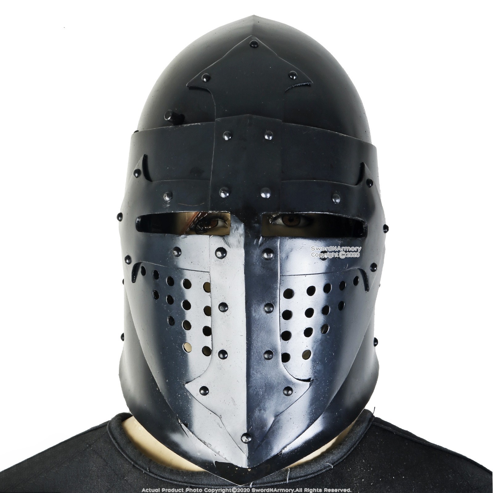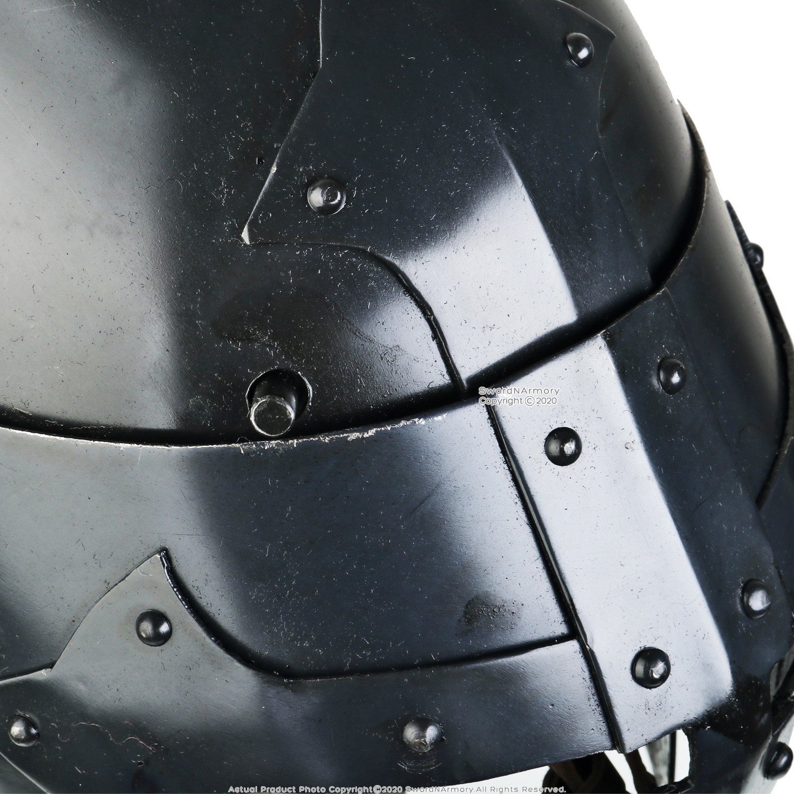- Functional Battle Ready 16G Medieval Black Knight Bassinet Helmet SCA Armor