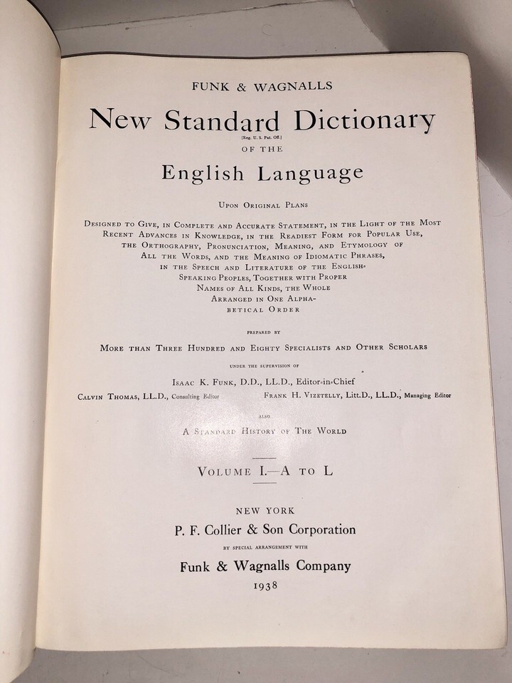 - Funk & Wagnalls New Standard Dictionary Of the English Language 1938 Hardcover 2