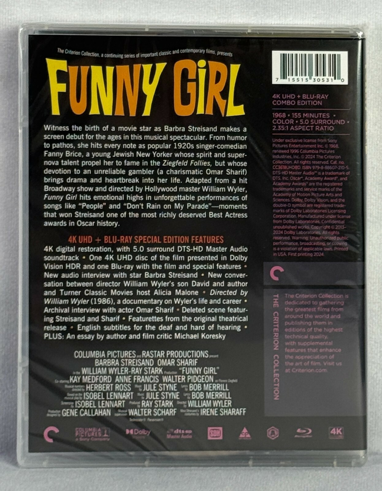 - Funny Girl Criterion Collection 4K UHD + Blu-ray, New