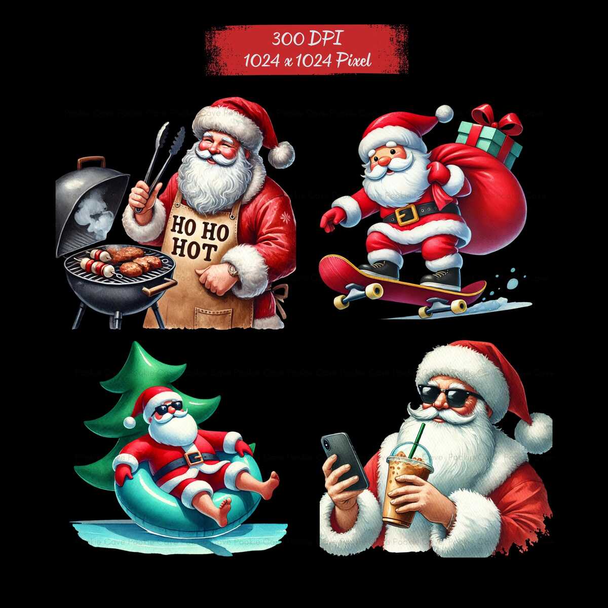Bring laughter and holiday cheer to your designs with this Funny Relaxed Santa Watercolor Clipart Bundle! Perfect for stickers, sublimation, cards, mugs, T-shirts, planners, journals, and digital prints.