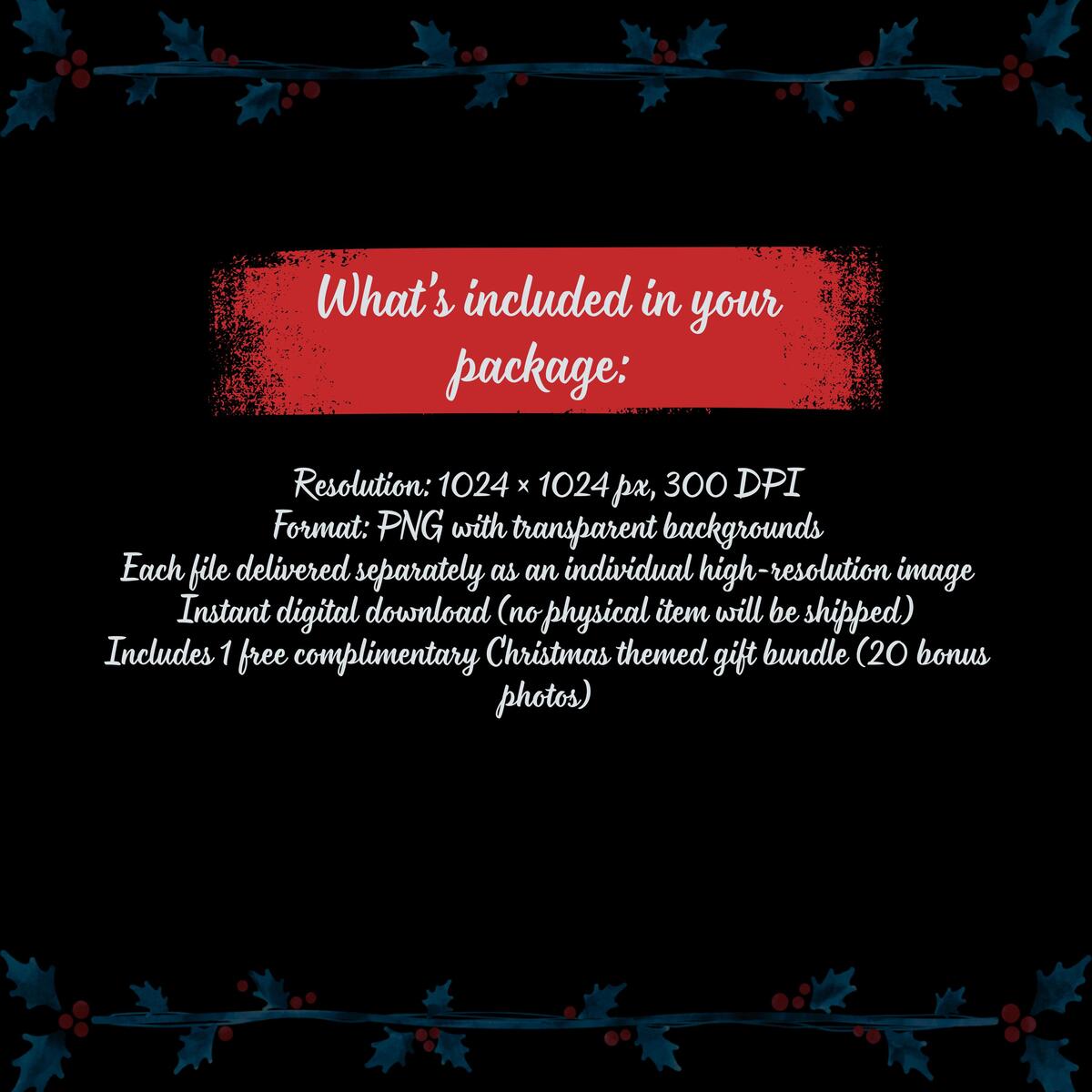 BONUS: Free complimentary Christmas-themed gift bundle (20 extra photos!)