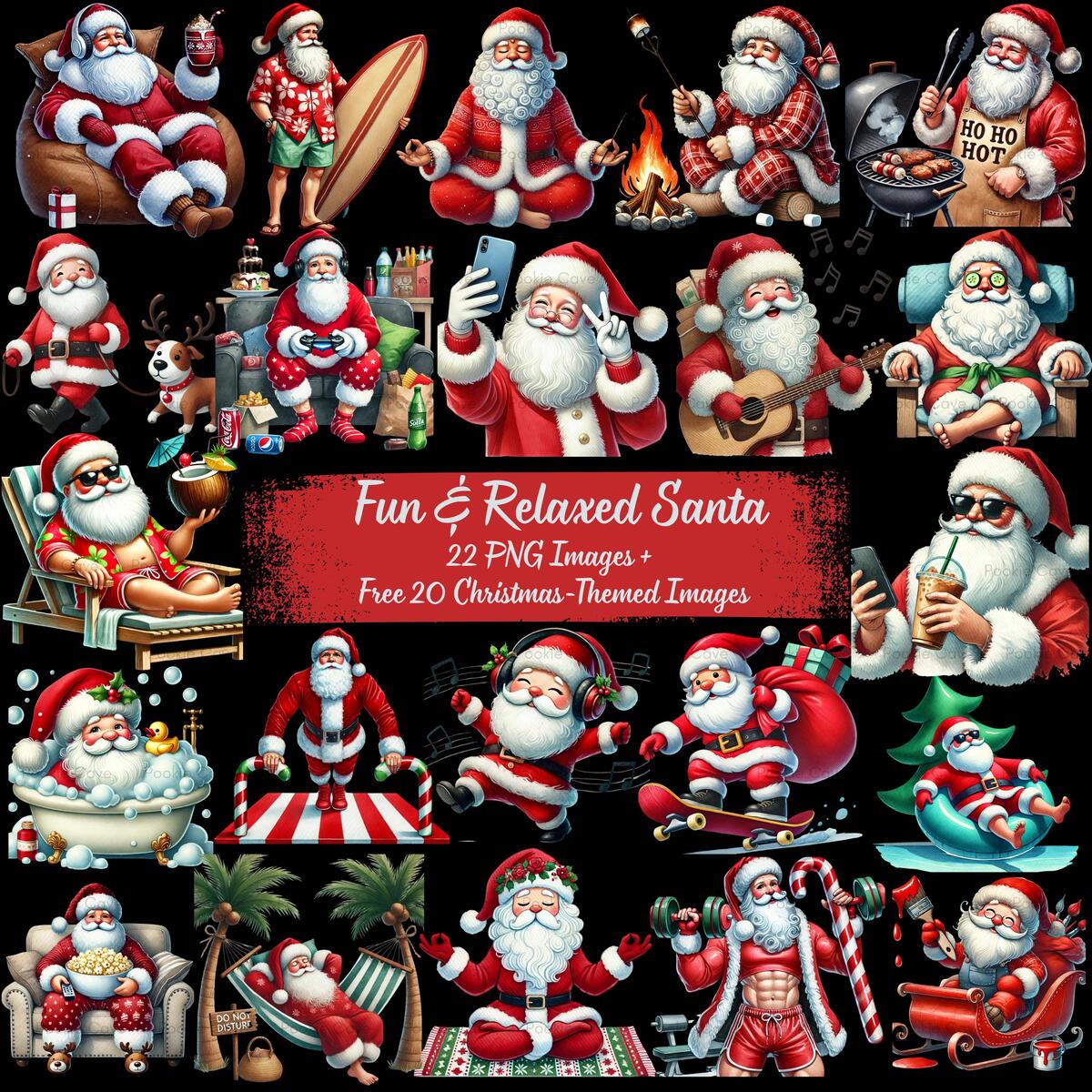 Funny Santa Clipart Bundle: Relaxed Christmas PNGs (Digital Download)