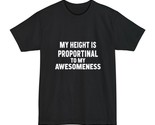 A quirky and fun T-shirt designed exclusively for tall individuals, featuring the slogan 'My Height Is Proportional to My Awesomeness'. This T-shirt is perfect for tall people who want to embrace their uniqueness and stand out in style. Ideal for casual wear or as a conversation starter at social gatherings. Relevant for tall individuals who enjoy expressing their personality through fashion. Perfect for birthdays, casual outings, and everyday wear.