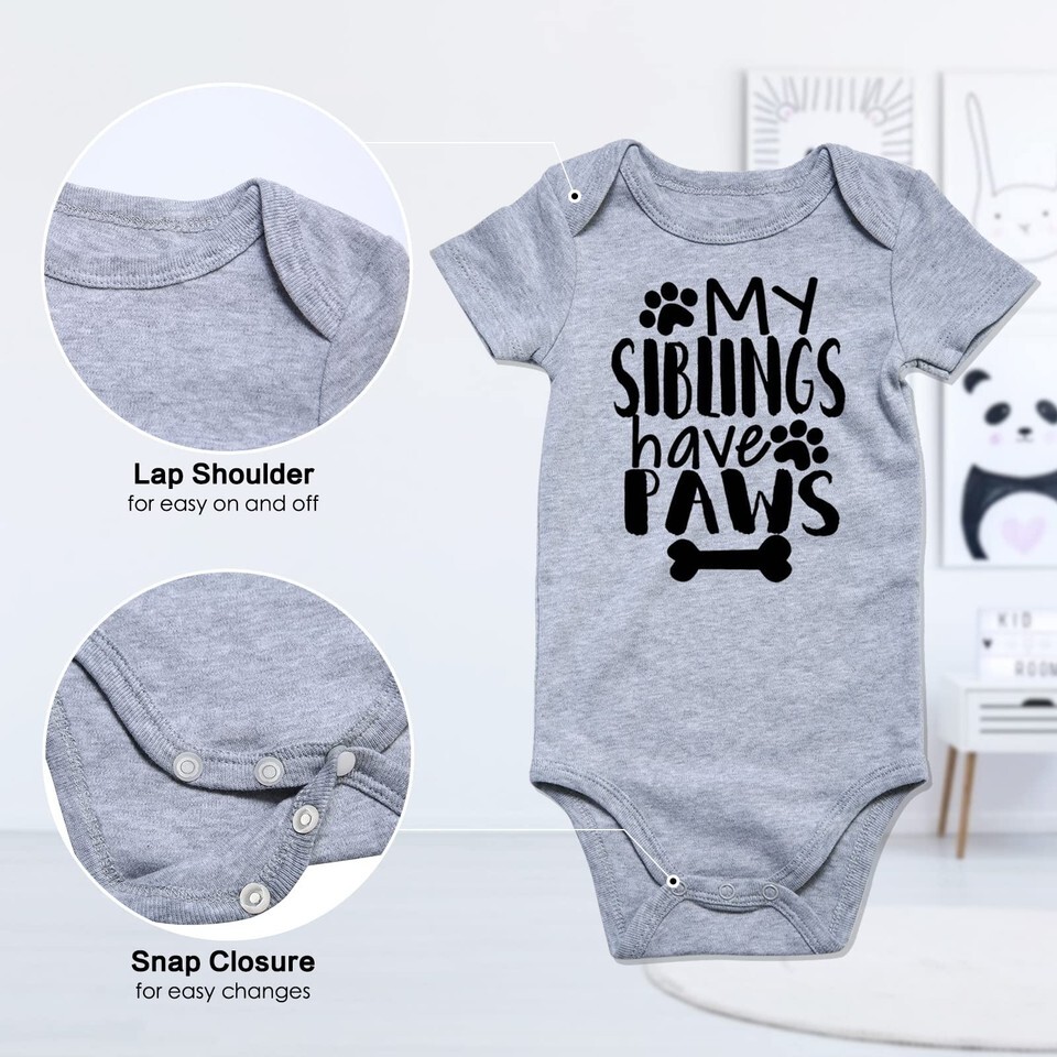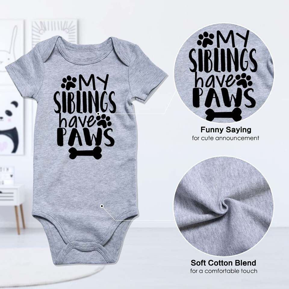 Funny: Baby Bodysuit in cute funny letters printed, such as "My siblings have paws", perfect gift bring extra laughter and joy with your baby;