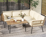Furniture Set, 4 Pieces Outdoor Patio Conversation Set, All-Weather PE Rattan Sectional L-Shaped Sofa with Soft Cushion and Side Table for Backyard, Porch, Boho Detachable Lounger (Beige)