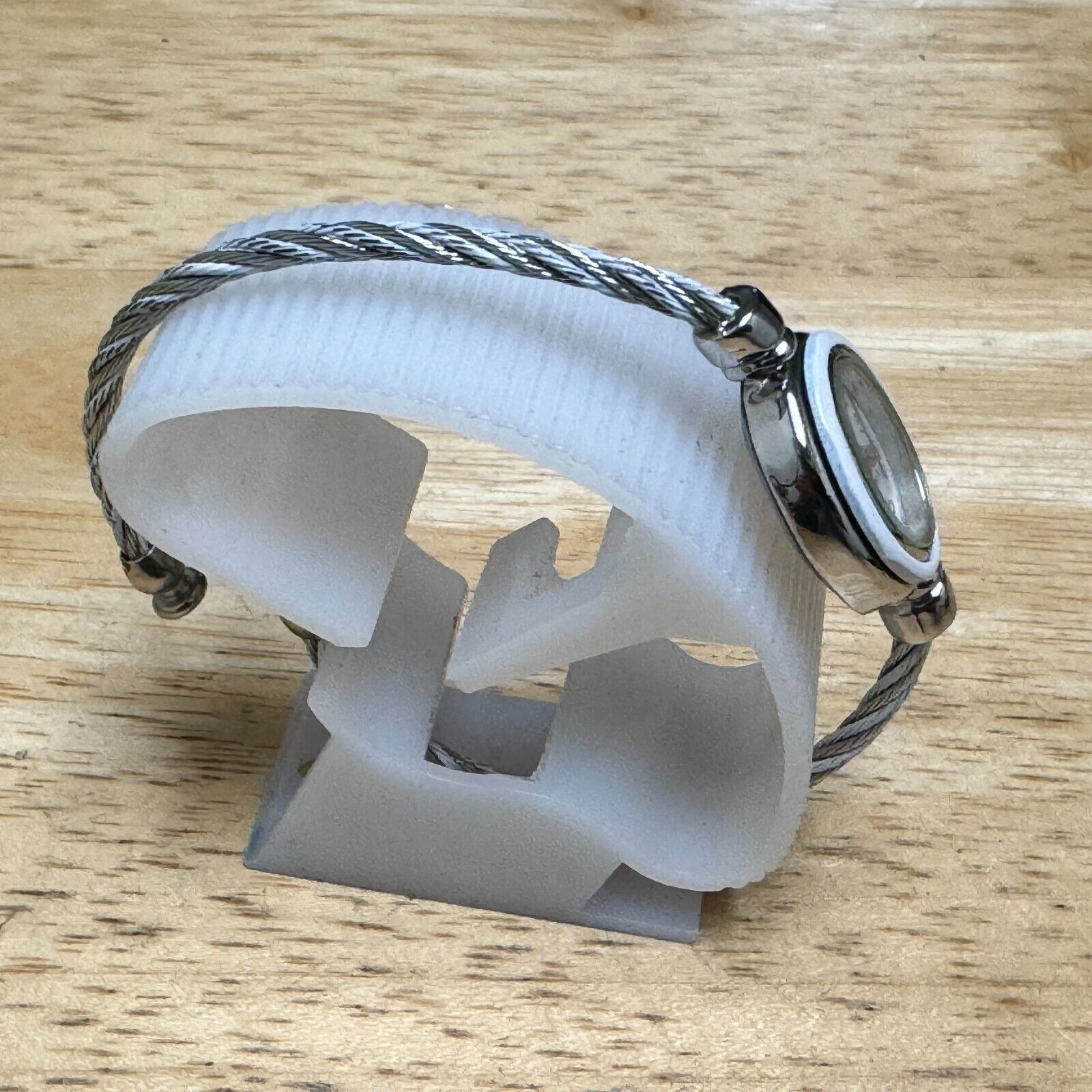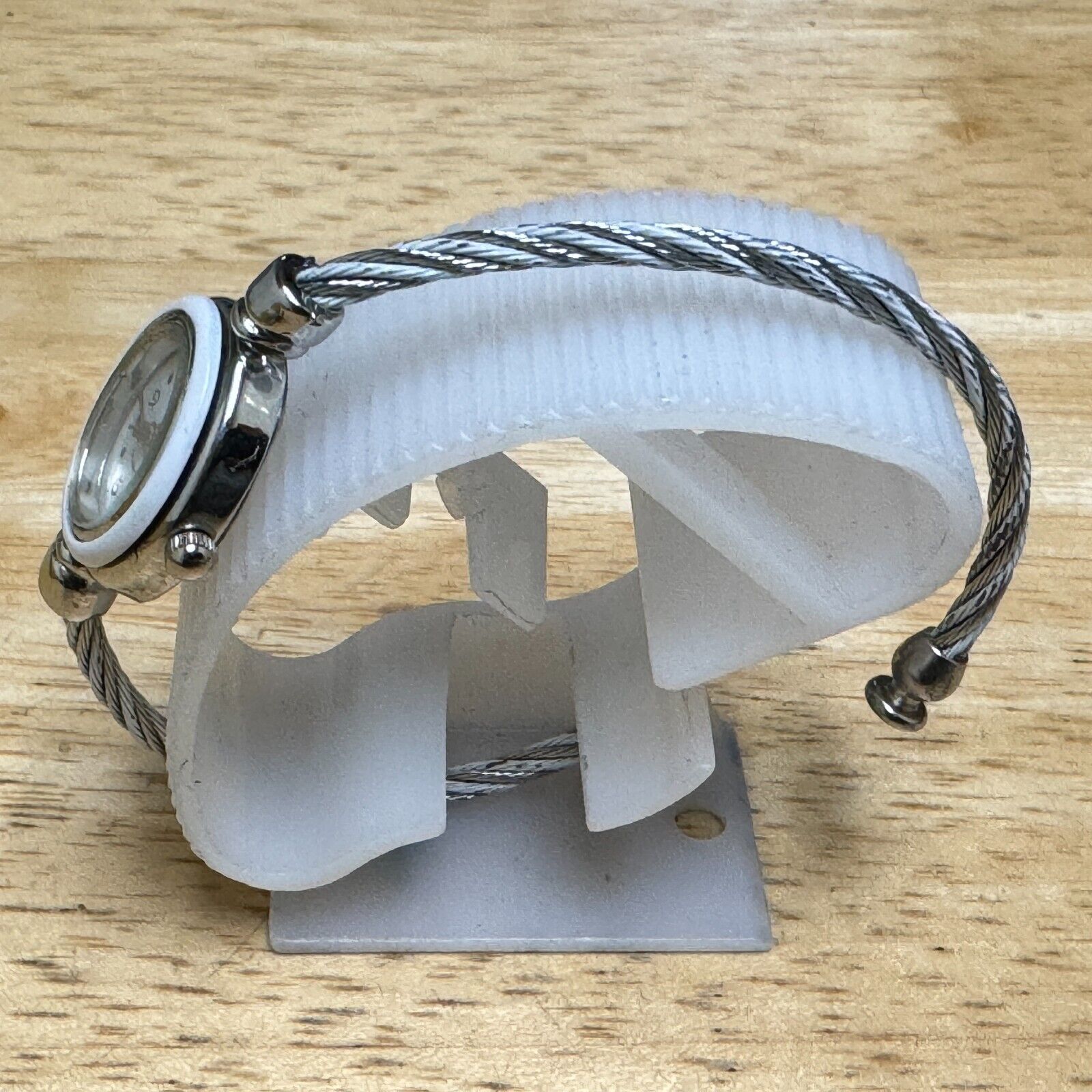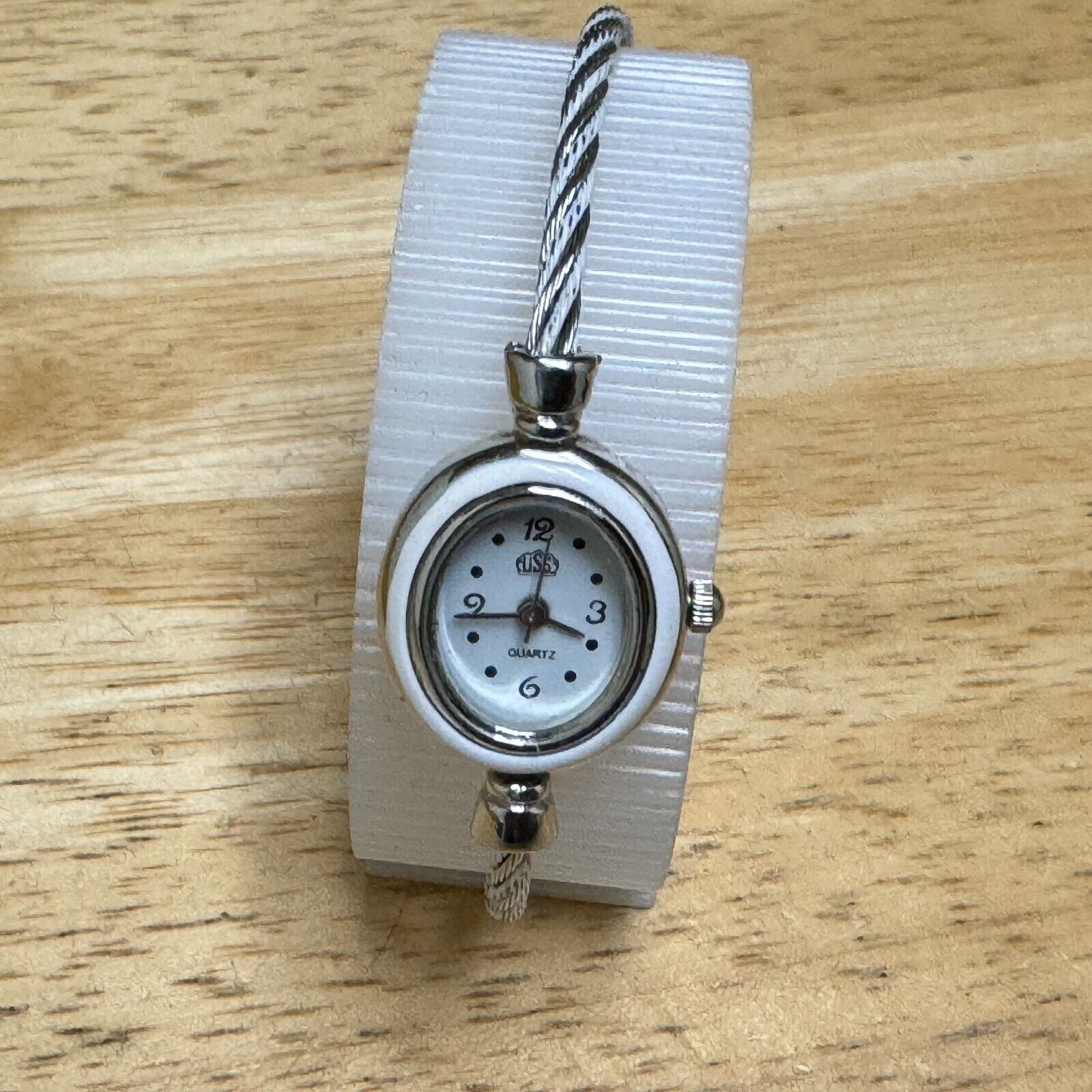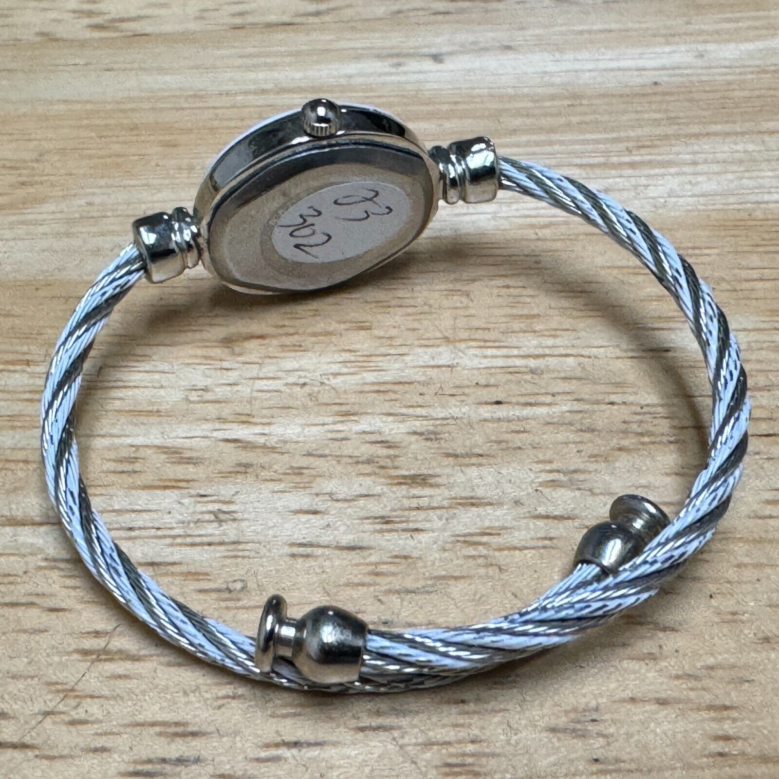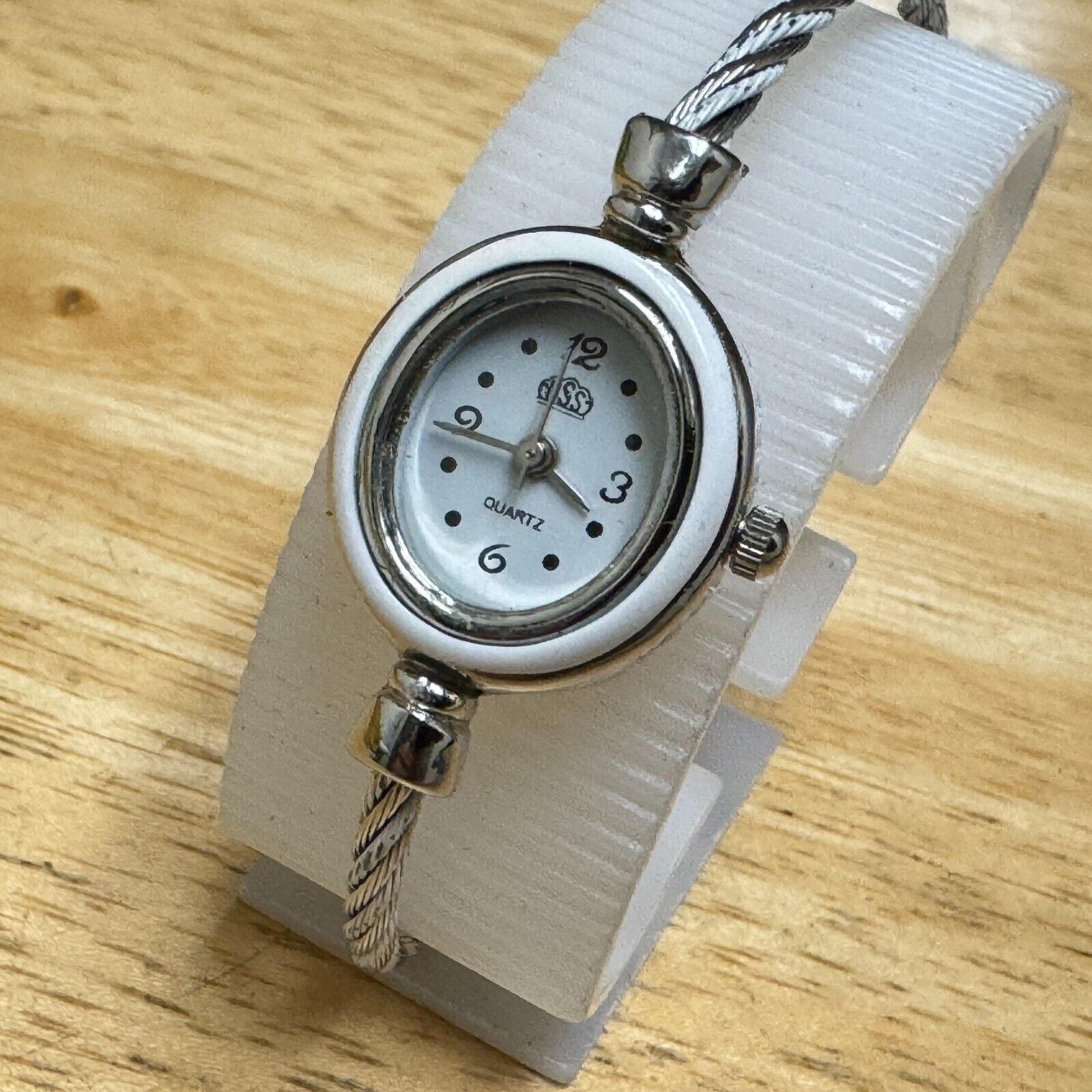 - Fussy Quartz Watch Women Silver White Wire Bangle Cuff Oval Analog New Battery