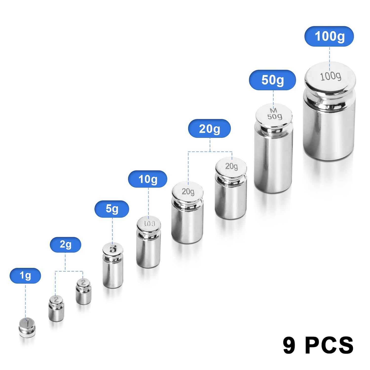 - Fuzion Calibration Weights 210G, M1 Class 9 Pcs Stainless Steel, Gram Scale