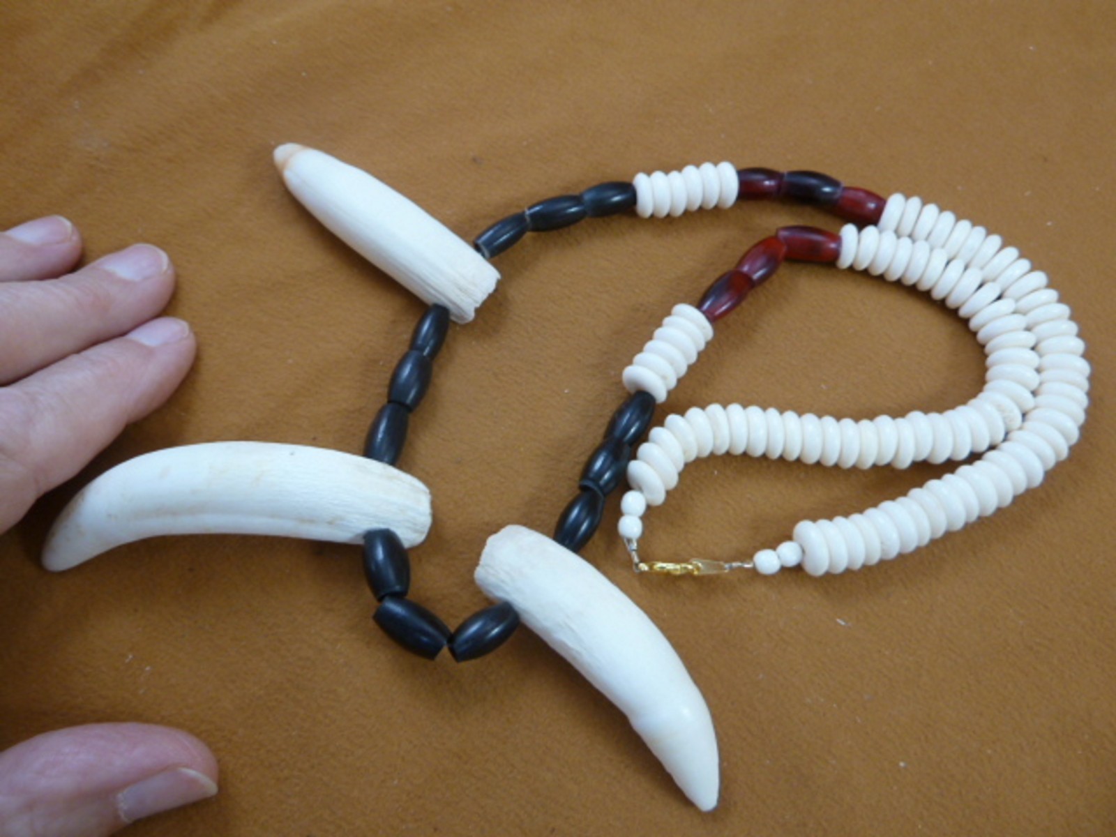- G157-40 up to 3-3/8" HUGE GATOR T**TH water buffalo 23" Necklace Alligator TEETH