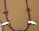 You are bidding on a 22" long necklace made with Two 1" gator claws, one 1-1/2" claw; two 1-3/4" gator teeth and 5x2 mm brown water buffalo ache beads; 8 mm round red mother of pearl beads, 14k gold plated lobster claw tab closure.