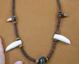 You are bidding on a 20" long necklace made with Two 1" gator claws, one 1-1/2" claw; two 1-5/8" gator teeth and 5x2 mm brown water buffalo ache beads; 8 mm round Tigereye beads, 14k gold plated lobster claw tab closure.