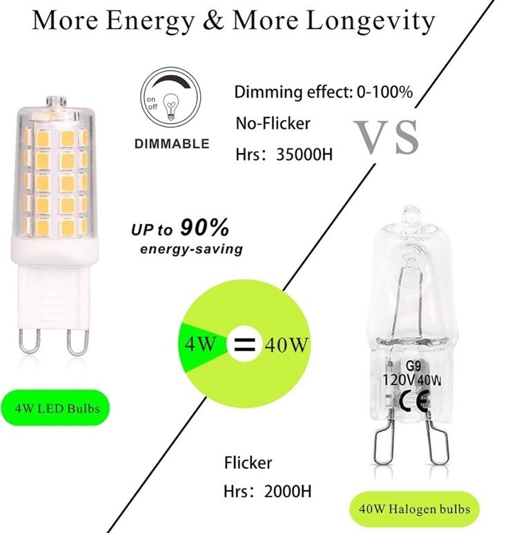 - G9 LED Bulb Daylight Dimmable 4W, 40W T4 G9 Halogen Equivalent,6000K 120V No-...