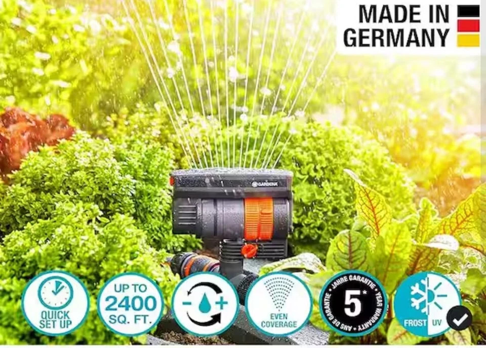 - GARDENA 20575 Up to 2300 sq ft ZoomMaxx Adjustable Oscillating Sprinkler Spike