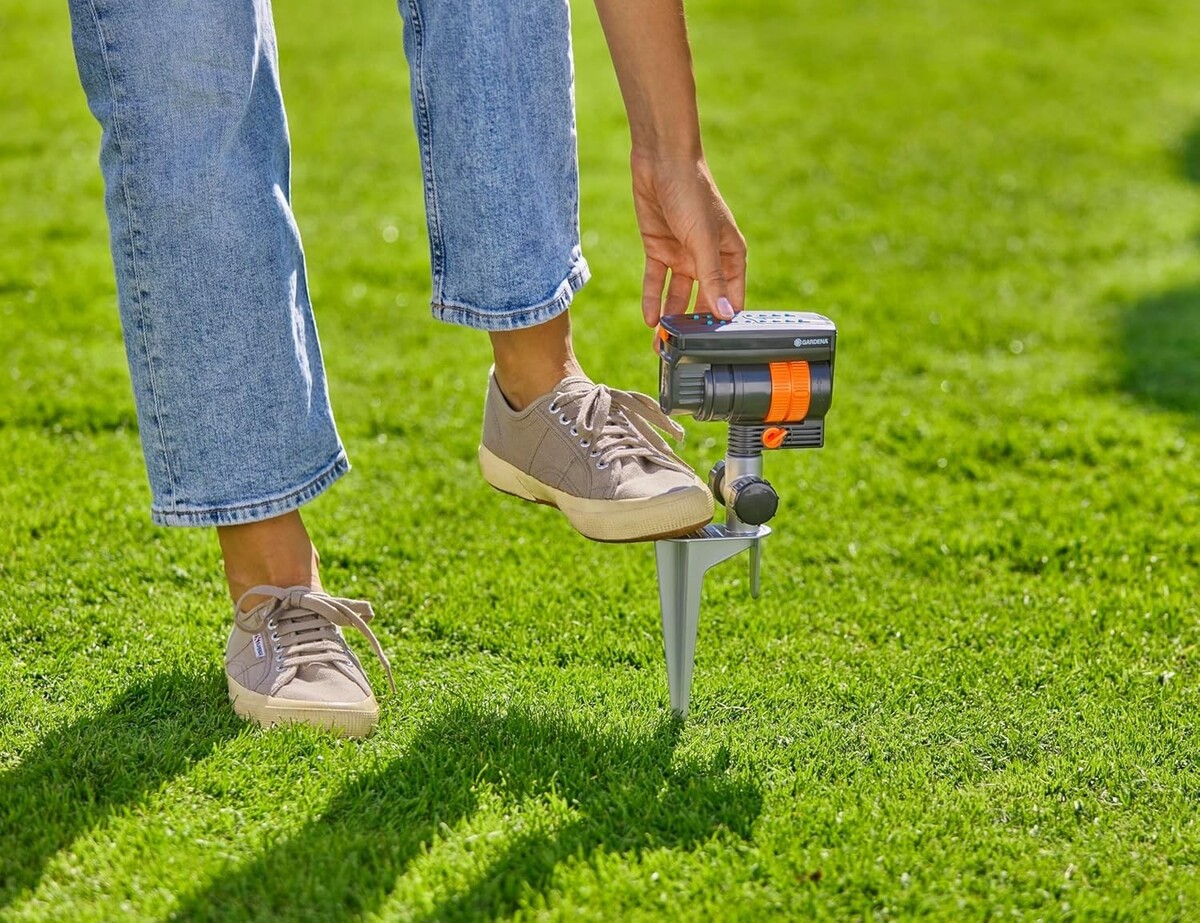Flexible and fast change of location: Simply position the Oscillating Sprinkler in the grass wherever required thanks to the durable metal spike base with a built in step, meaning it is hill friendly