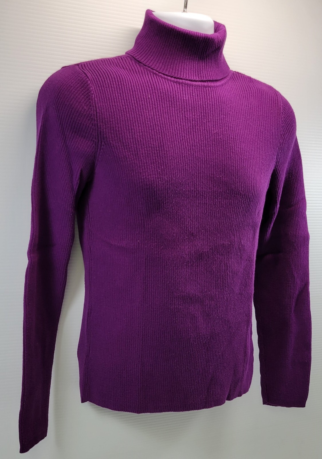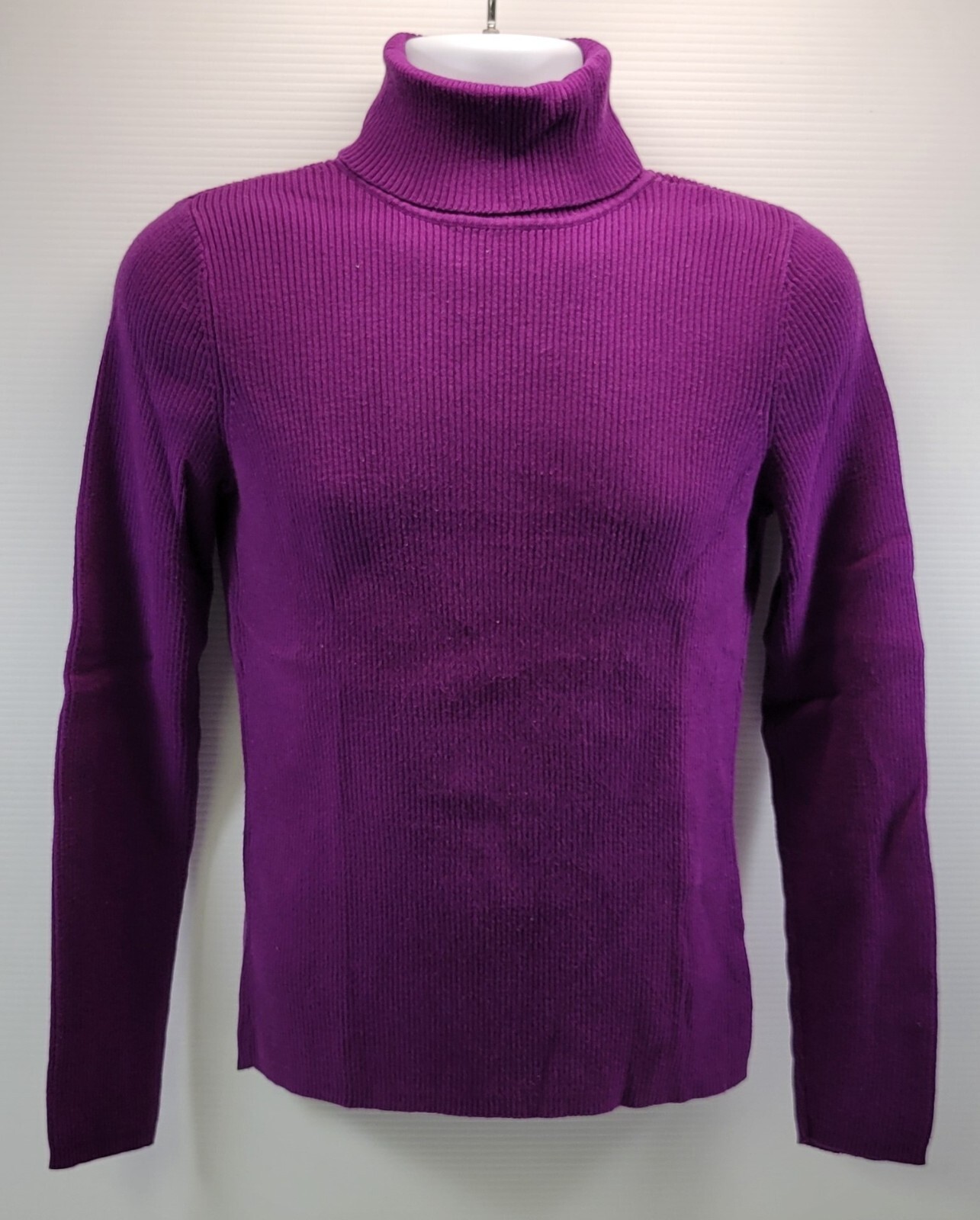 - GB2) Kate Hill Woman Purple Cotton Ribbed Turtle Neck Sweater Top Large