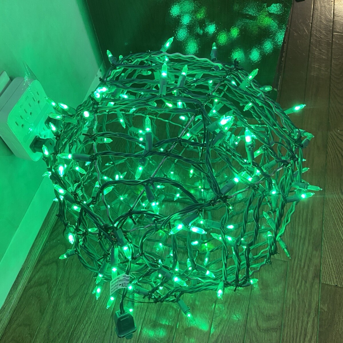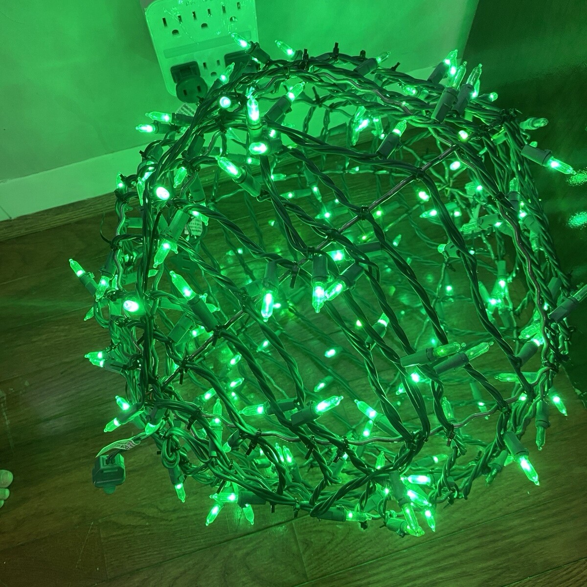 GE 100 Lights Spherical Holiday Classics Green Lights Christmas 14" Diameter