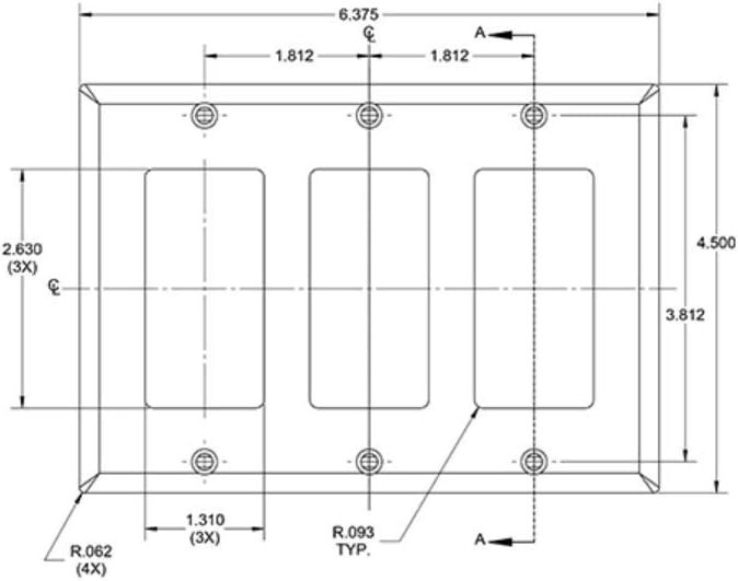 - 3-gang decorator-style wall plate for GFCI outlets and rocker switches