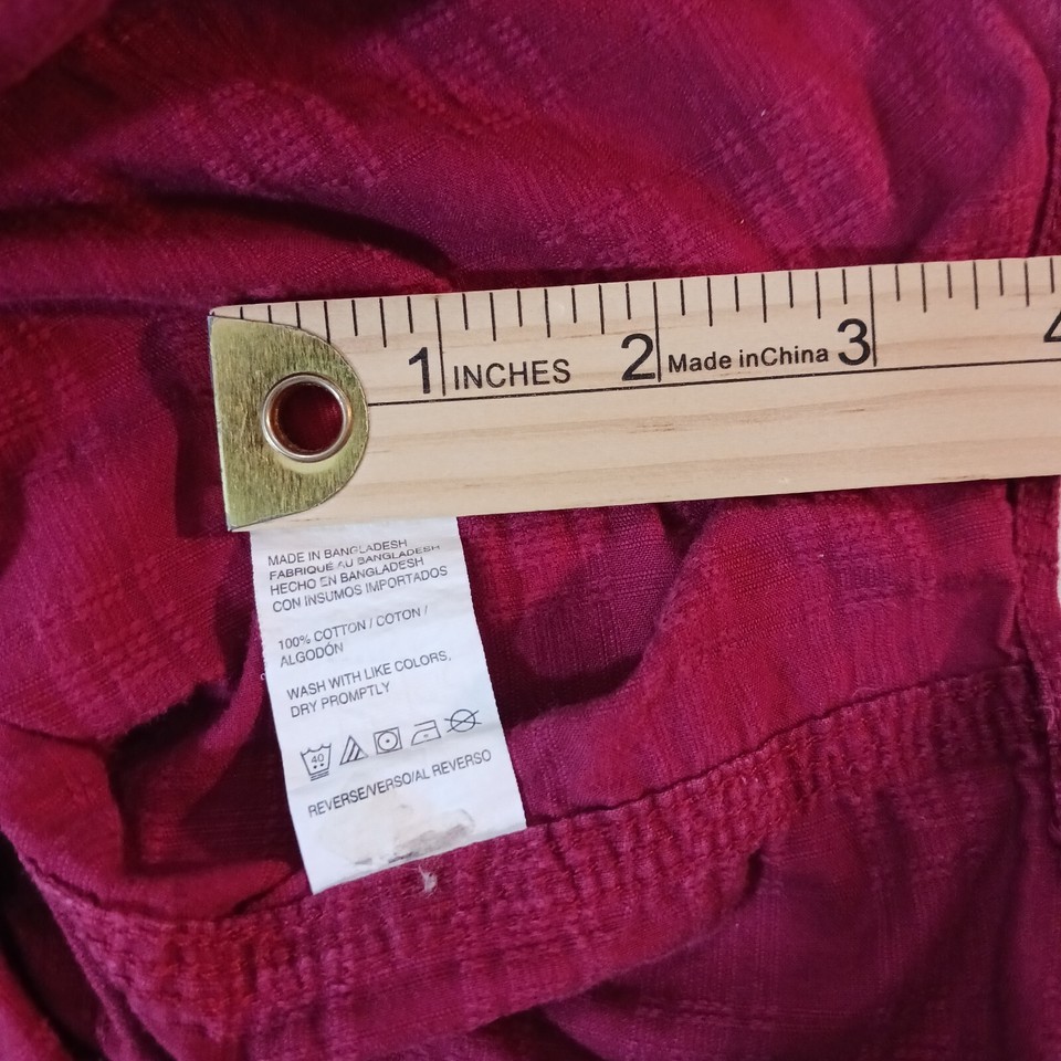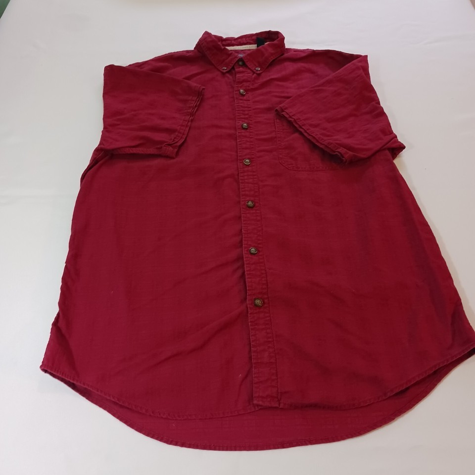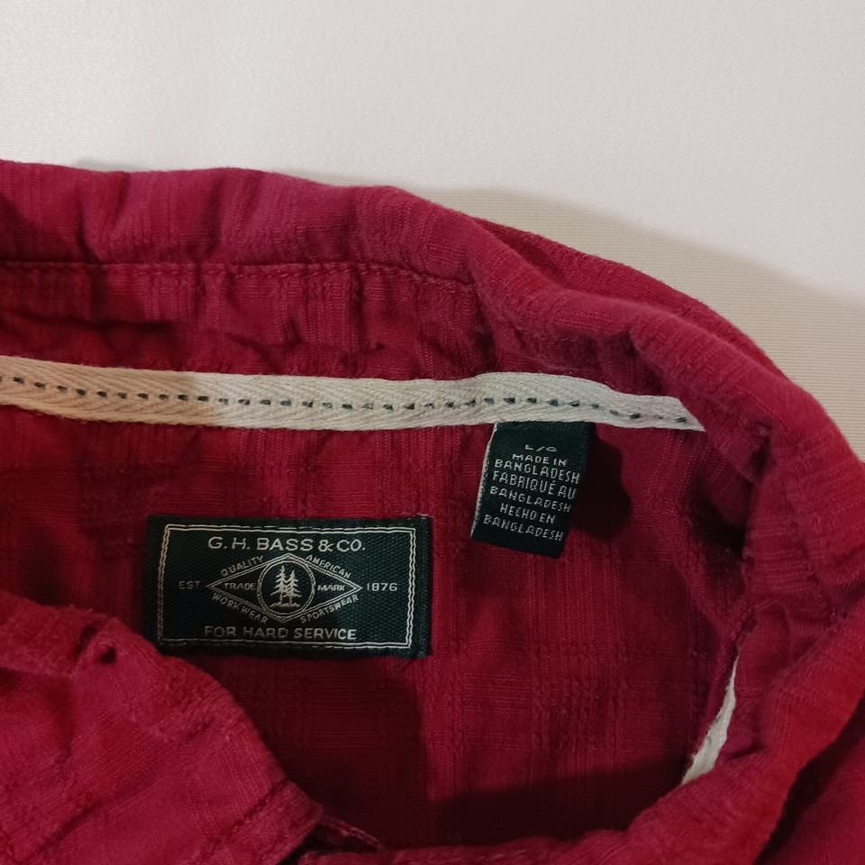 Elevate your casual wardrobe with this G.H. Bass Co. men's red cotton shirt. This short-sleeved button-up shirt comes in a size large and features a collared neckline with a button-down collar style. The shirt has a solid pattern and is made from machine-washable cotton material.