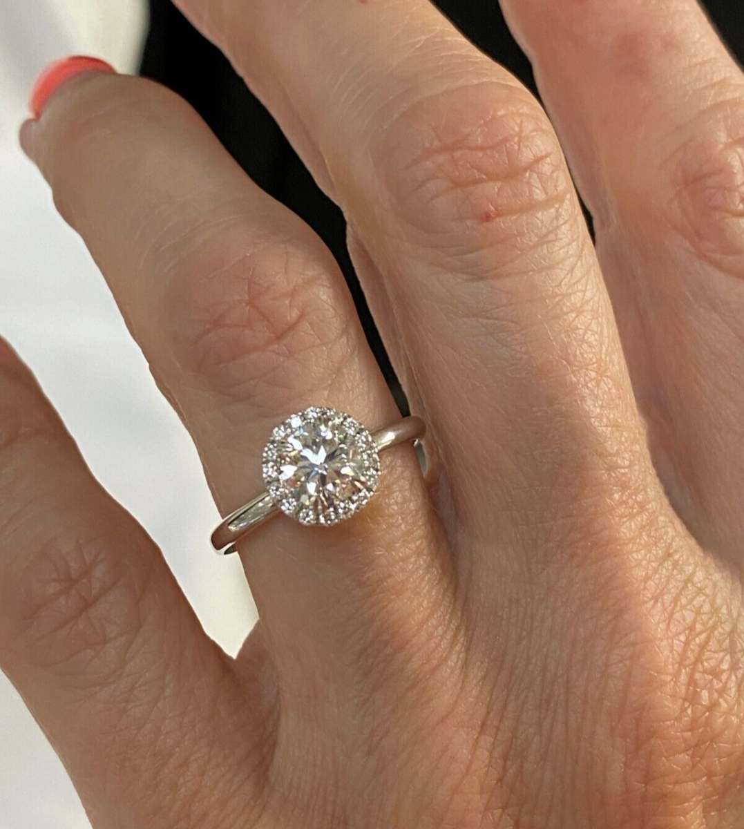 - GIA Zertifiziert 1.23 Karat Rundschliff Diamant Halo Verlobungsring 14k Weißgold
