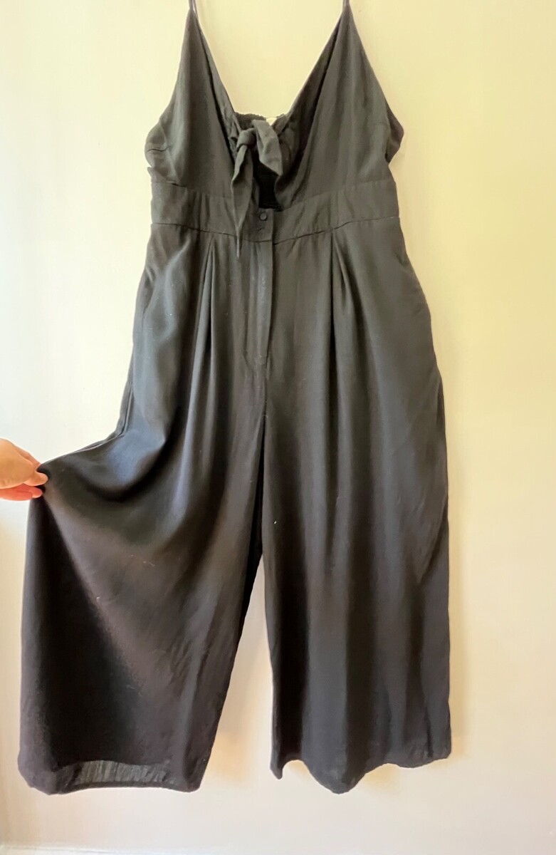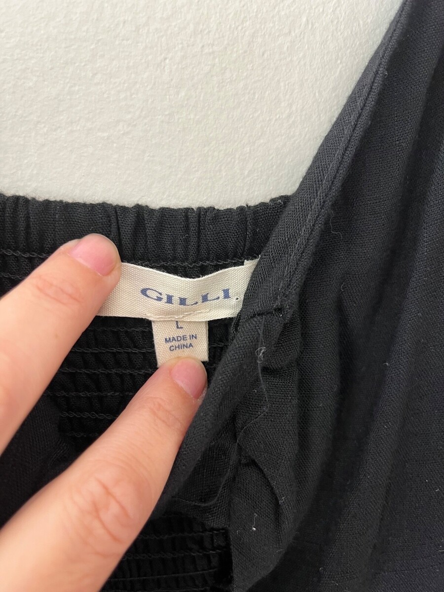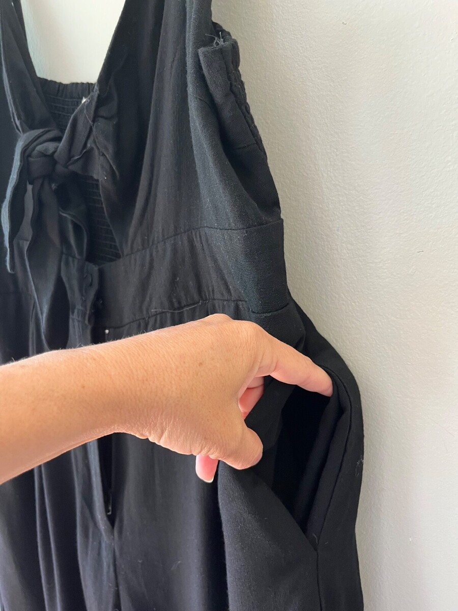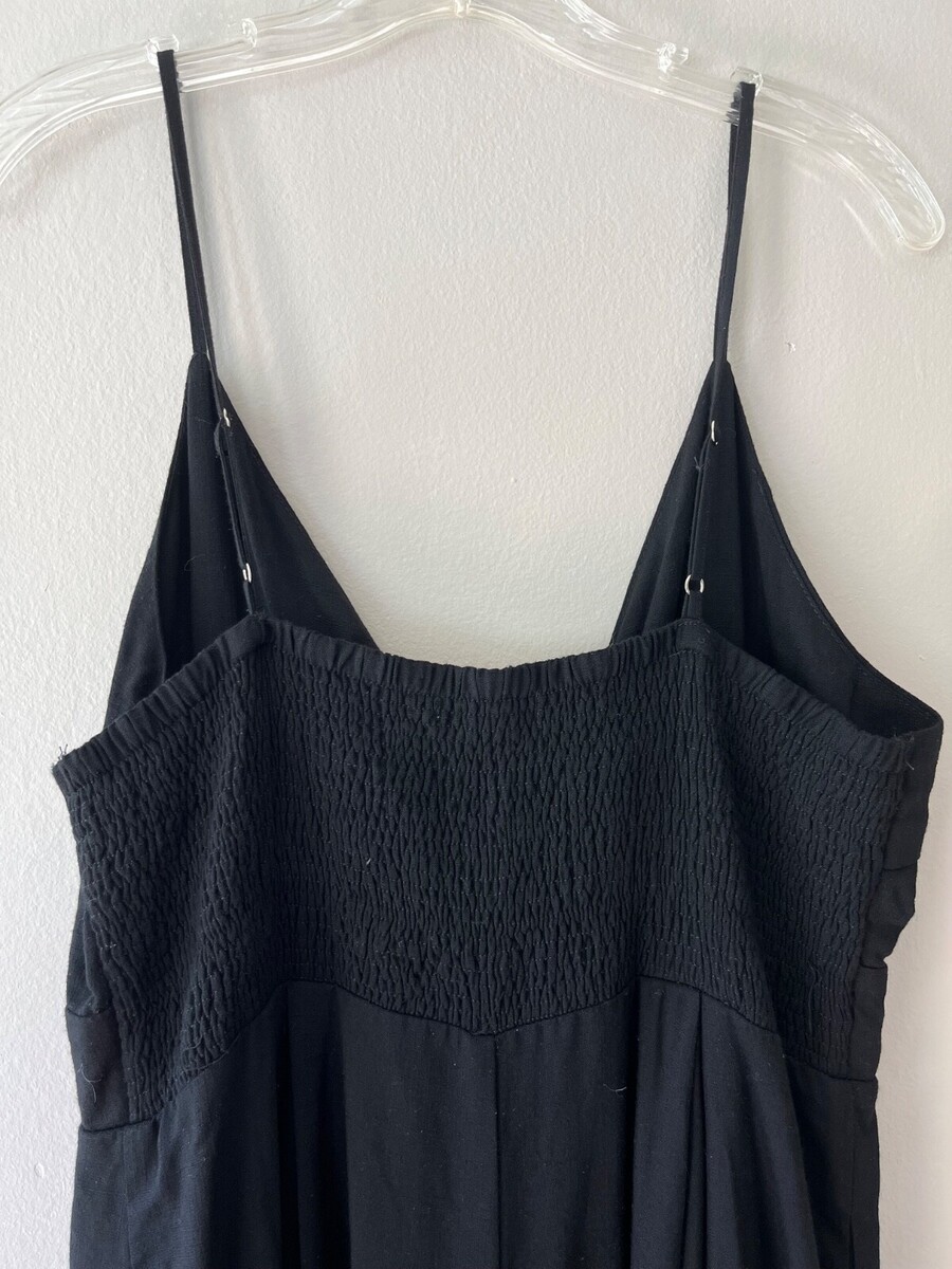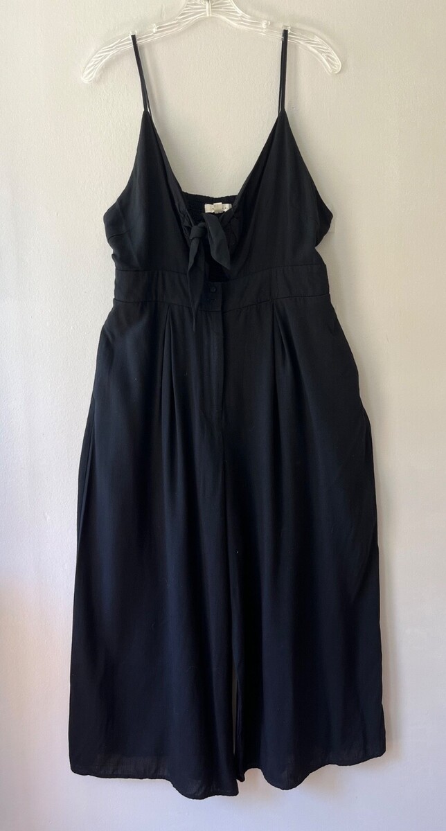 - GILLI SleevelessTank Swing V Neck Black Wide Leg Jumpsuit Romper Pockets Size L