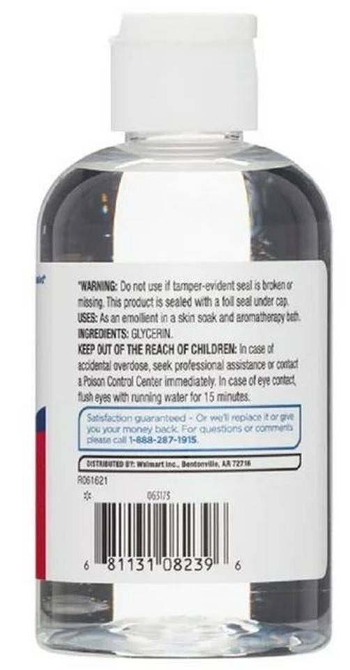 this liquid glycerin by equate brand will help keep your skin moisturized, tones the skin, keeps feet crack free, makes lips soft and supple, helps cure mouth ulcers, glycerin helps improve psoriasis and eczema, helps with skin aging, brightens your nails, use this liquid glycerin in home made makeup setting spraY, helps prevent dry or frizzy hair.