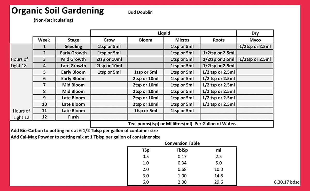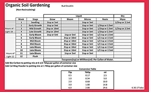 Organic Bud Doublin three-part system is made from 100% organic ingredients; fish hydrolysate, North Atlantic kelp, beneficial soil biology, humic and fulvic acid, micro-nutrients and chelating agents. Grow healthy plants free from any synthetic chemical additives and always safe to use around pets and children.