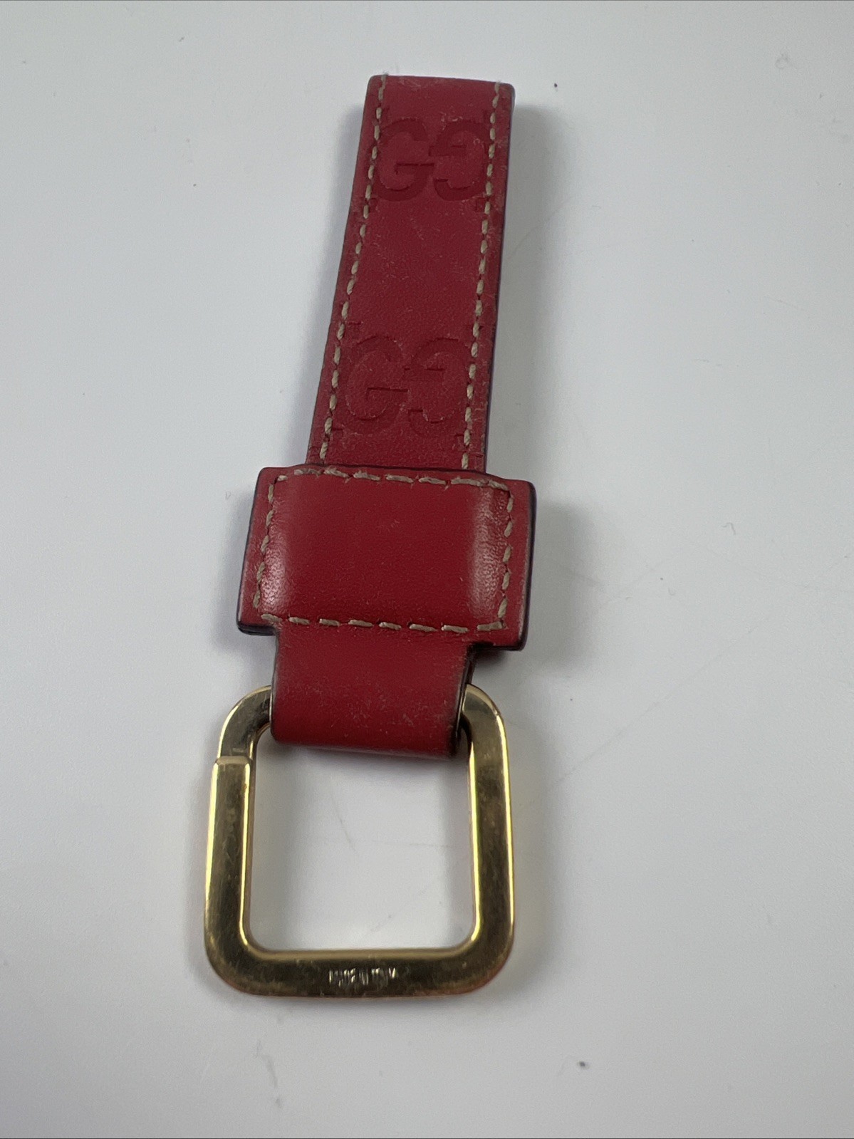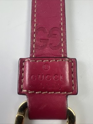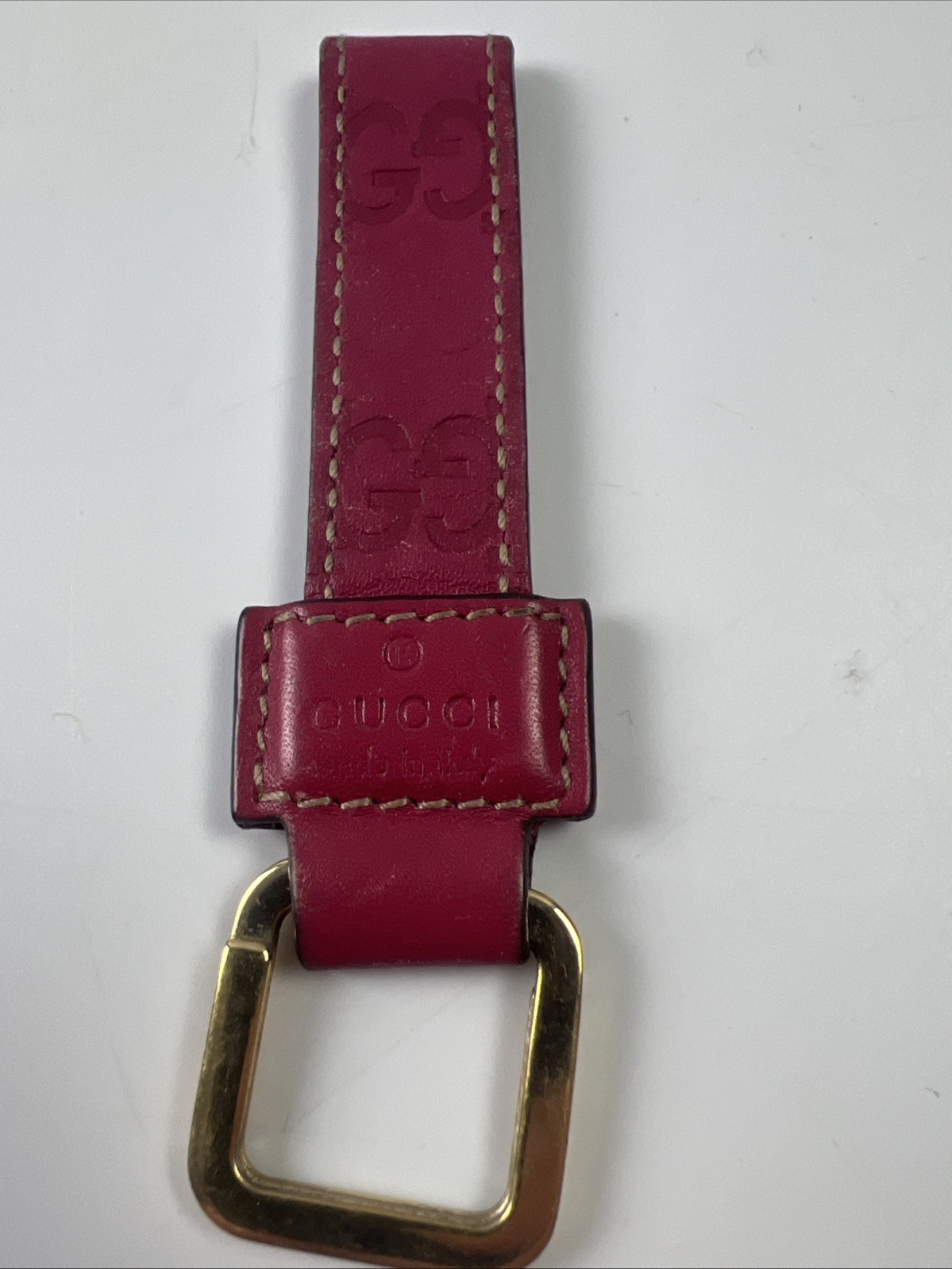 - GUCCI Keychain GG Logo Embossed Dark Pink Gold Leather Women