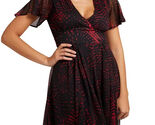 GUESS Lavinia Printed Dress Short flutter sleeves Lined Size Medium Black Red