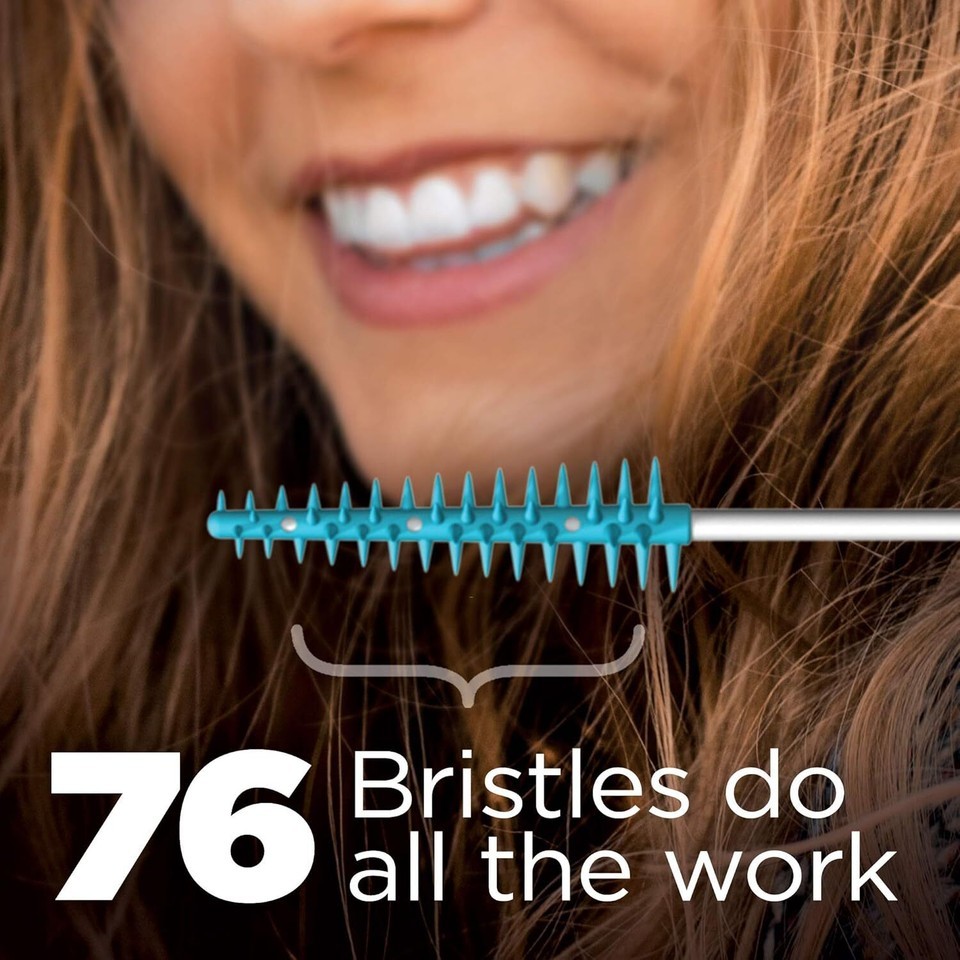 The synthetic rubber bristles fit easily between most teeth, removing dental plaque where gum disease often starts and toothbrushes cannot reach