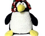 GUND Black Penguin Stuffed Plush Red Plaid Trapper Hat W/ Flaps Animal 16”