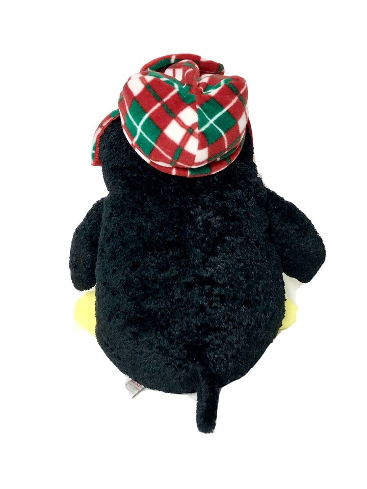 - GUND Black Penguin Stuffed Plush Red Plaid Trapper Hat W/ Flaps Animal 16”
