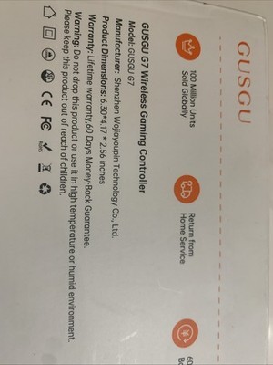 The GUSGU G7 Wireless Gaming Controller is a sleek and ergonomic controller designed for solo gaming experiences. With dual analog triggers and wireless connectivity, this controller offers versatility and ease of use. Its black plastic design, manufactured in China in 2019, ensures a comfortable grip and reliable performance. The controller also features a one-year manufacturer warranty, ensuring customer satisfaction. Perfect for gamers looking for a high-quality and reliable gaming accessory.