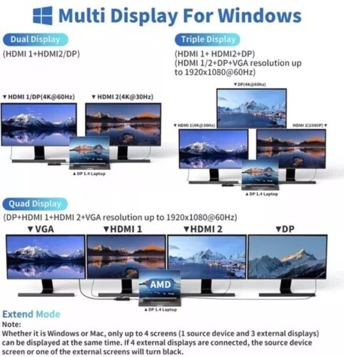 - GVRIOY USB C to Dual HDMI Adapter Multi Display Docking Station Dual Monitor