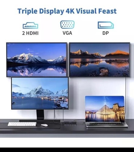 This GVRIOY USB C to Dual HDMI Adapter Multi Display Docking Station Dual Monitor is a versatile and powerful device that allows you to connect multiple devices to a single USB port. With a total of 8 ports, including VGA, USB, USB Type C, HDMI, and USB 2.0, this adapter offers a variety of hardware interfaces to choose from.
