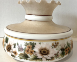Offered is this lovely Large Quoizel Abigail Adams Gone with The Wind Style Lamp Shade. The shade has a white base color with large light brown banding accented with dark reddish brown and yellow trim banding. The center is decorated with a lovely floral arraignment with greens, yellows, tans and white. The shade is large standing 8 1/8" tall,11" in diameter at its widest and has a 6 3/4" fitter. It is in wonderful well cared for pre-owned condition with no areas of concern with the minimalist amount of vintage wear. A beautiful shade sure to enhance any setting! There are two of these available and as always we are happy to combine shipping.