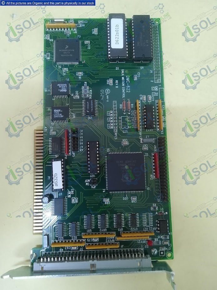The Galil Motion DMC-622 is a high-performance, two-axis Motion Control Server Card (Revision REV B, Part Number 067-03045-0000). This card is engineered to manage the precise, synchronized motion of two separate motors (such as servo or stepper motors). It functions as a dedicated controller, handling complex trajectory planning, PID loops, and sequence execution, thereby relieving the host computer of these tasks. The DMC-622 is an essential component in advanced applications like robotics, CNC machines, pick-and-place automation, and high-precision testing equipment that demand accurate, high-speed, and coordinated movement.