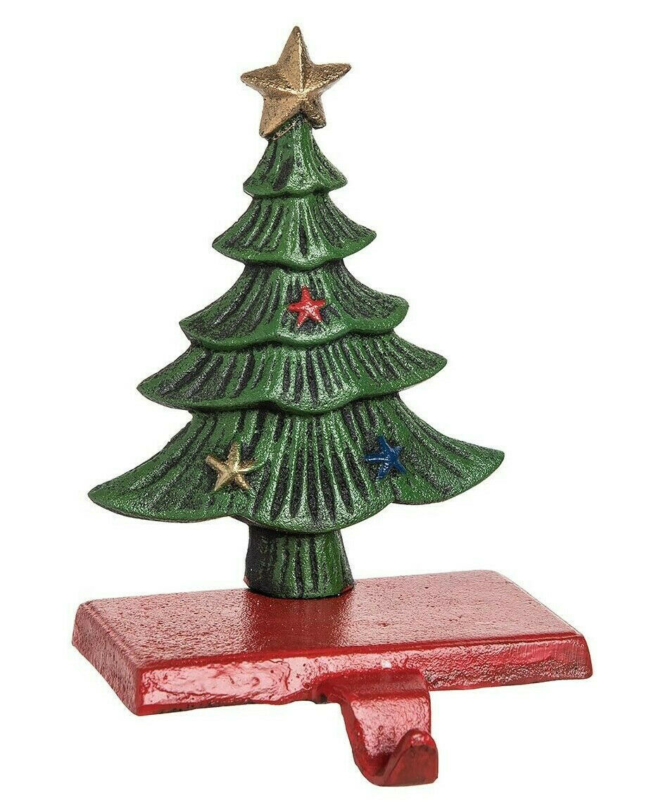 - GALLERIE II 8.7" CAST IRON HAND PAINTED CHRISTMAS TREE STOCKING HOLDER HANGER