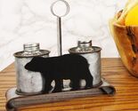 Galvanized Metal Western Rustic Black Bear Salt & Pepper Shakers Holder Carrier