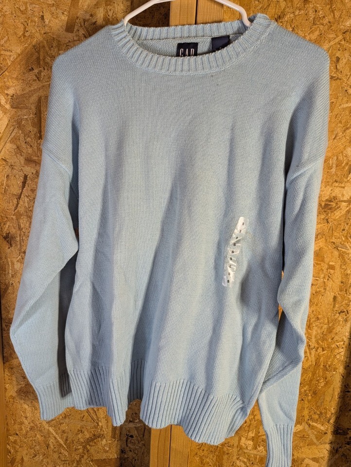 This Gap small size cotton long sleeve sweater is a solid blue pullover with a crew neck and tight-knit fabric, perfect for casual wear or travel during the winter, fall, or spring seasons. Made with stretchy cotton material, this sweater features a regular fit and is machine washable for easy care. Perfect for adding a cozy and stylish touch to any woman's wardrobe, this sweater from the Gap brand is a timeless and versatile piece for any occasion.