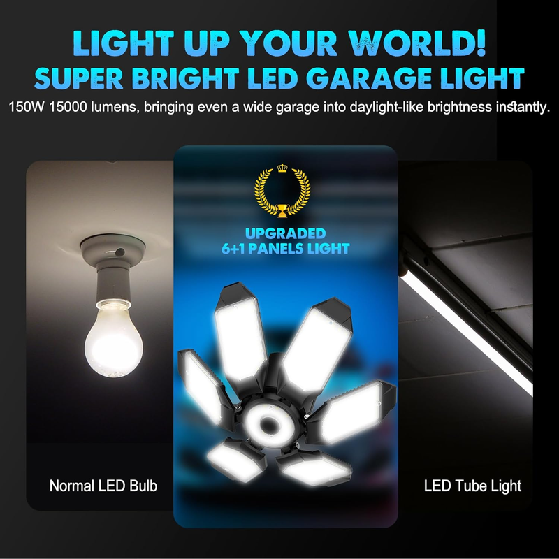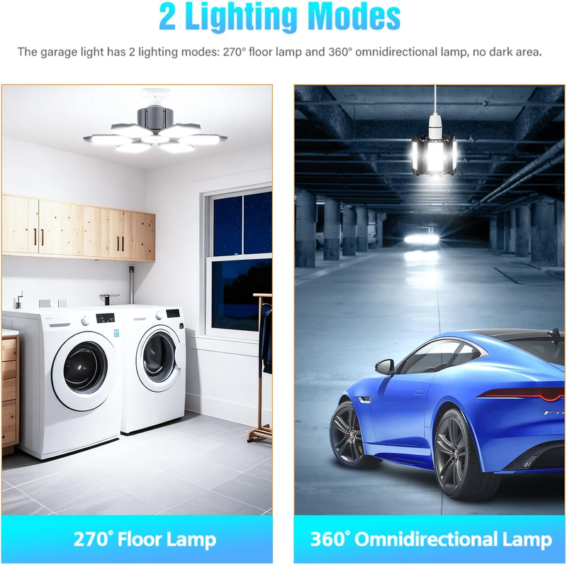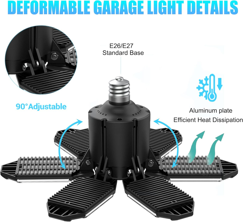 Garage Light Bulb LED 100W with 6 Deformable Panels, E26/E27 Garage Led Ceiling