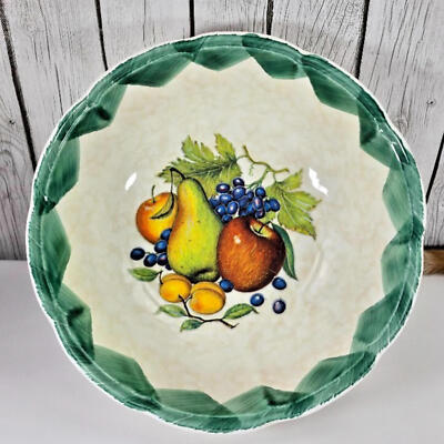 - Garantito Per Alimenti Green 12” Ceramic Bowl Apple Pear Fruit Italy Vintage