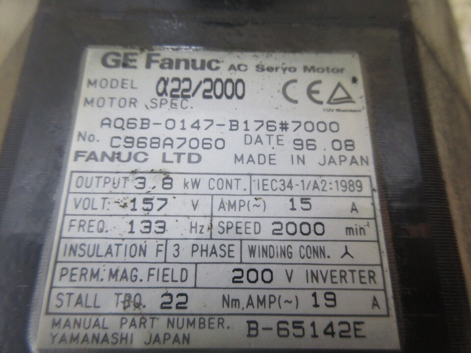 GE FANUC AC SERVO MOTOR 0(22/2000 A06B-0147-B176 #7000 C968A7060 96.08 3.8KW