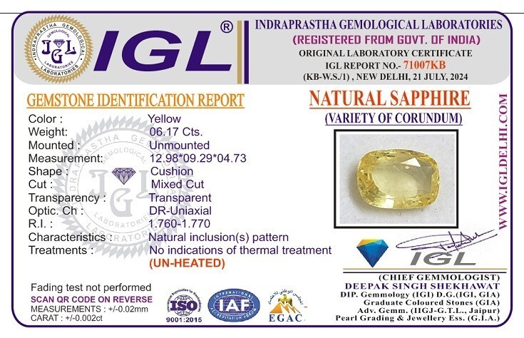 Gelbe Saphir - 6.17 Karat - Ceylonesisch - Nicht Erhitzt / Chemiefrei - Igl