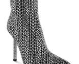 Opulent, indulgent, luxurious- meet your new ankle-length stiletto boots. They have a soft microfiber upper and patterned rhinestone embellishment. With a side zipper fastening and 4.5-inch rhinestone-studded stiletto heel, these party boots are one pair that will soon turn into your price possession.