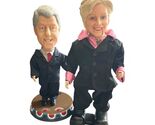 Figures wear fabric suits (Bill in navy, Hillary in black with pink accents)