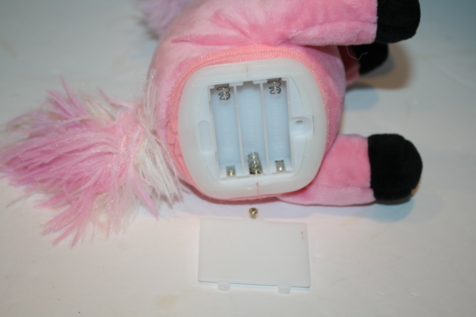 Gemmy, Animated, Plush, Singing Dancing, PINK UNICORN, Approx 10", Sings, "We Wish You a Merry Christmas" Plush, Stuffed Animal on a Plastic Base, No Seam tag/Removed