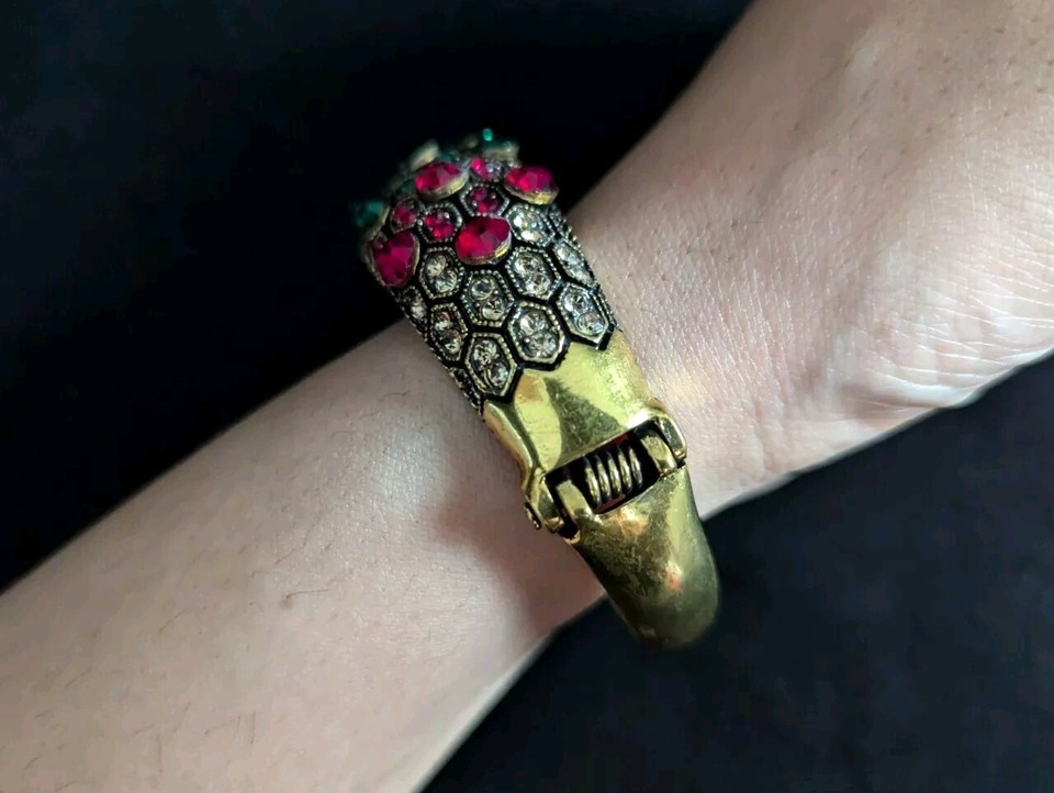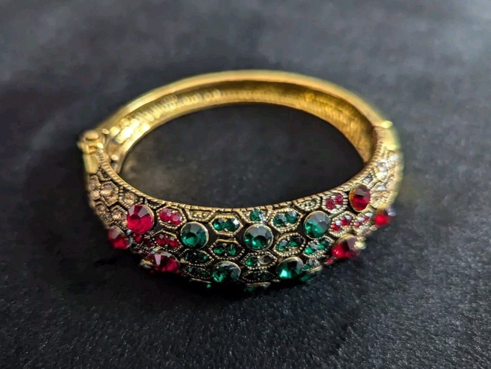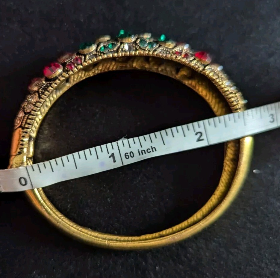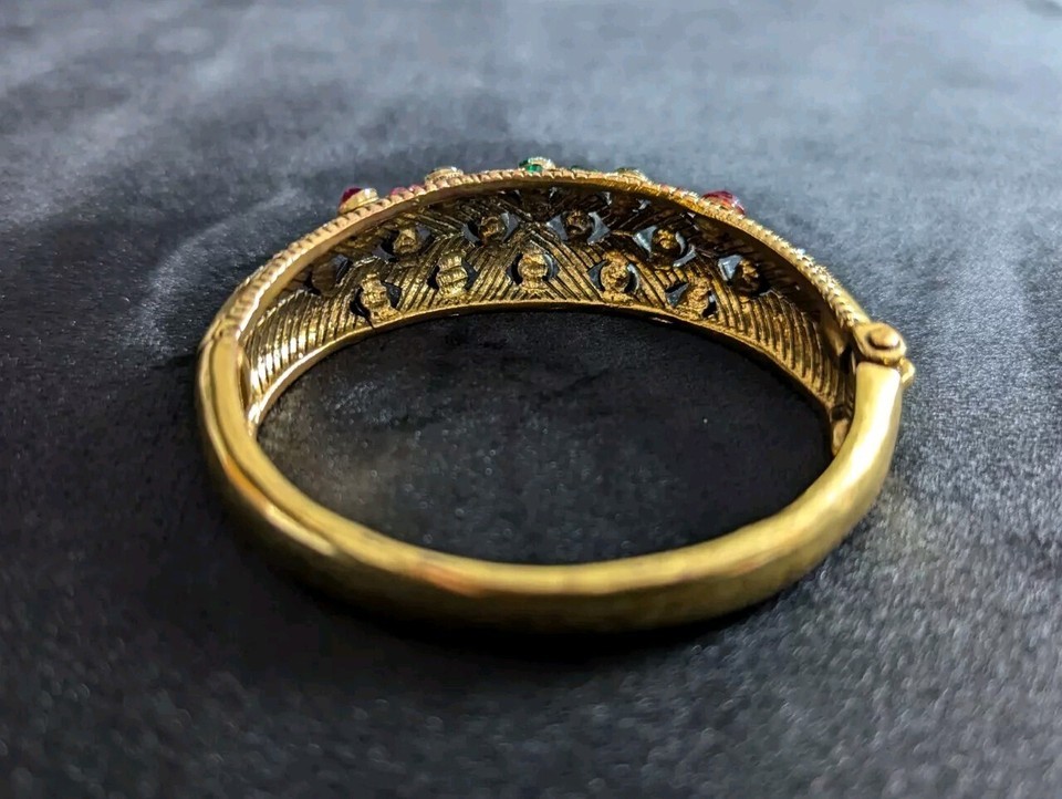 - Gemstone Hinge Bangle Bracelet Gold Emerald Ruby Ethnic