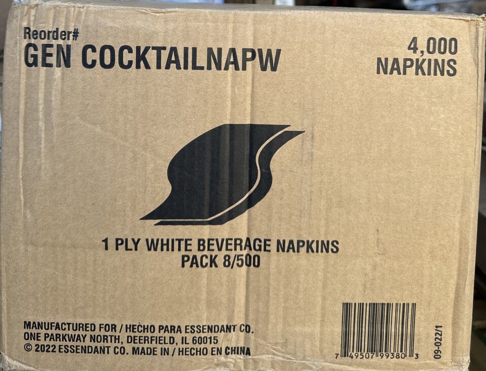 - GEN COCKTAILNAPW 1-Ply 9" x 9" Cocktail Napkins - White (500/PK, 8 PK/CT) New