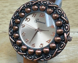 - Geneva Quartz Watch Women Bronze Tone Ornate Bezel Cuff Bangle New Battery