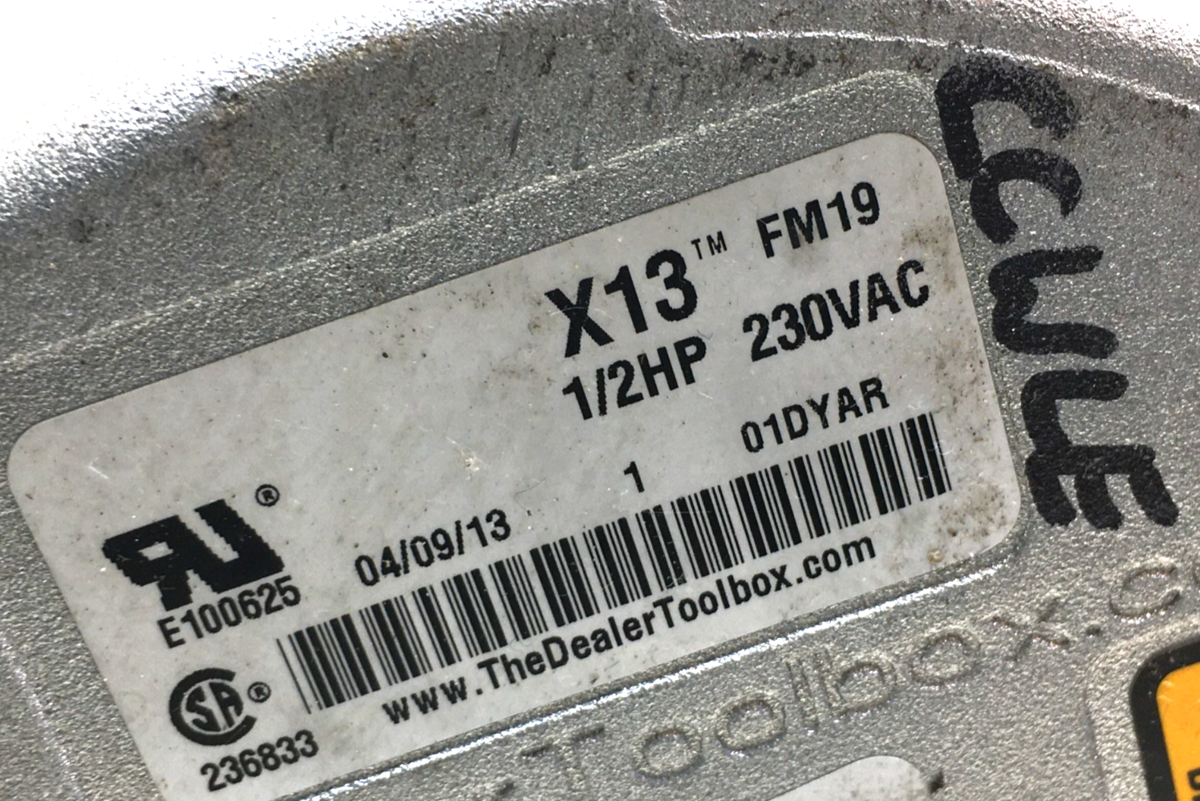 - Genteq X13 FM19 5SME39HXL015A Blower Motor 46132-060 230V .5HP CCWLE used ME331