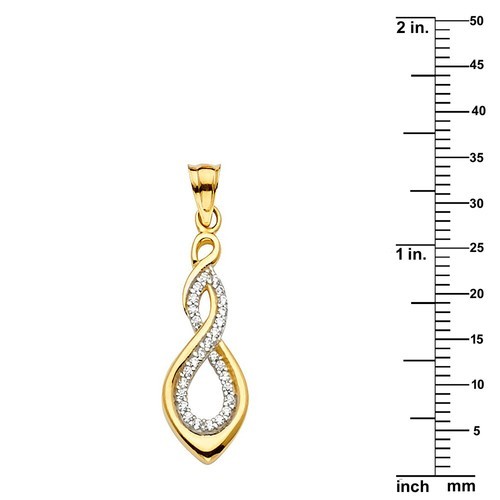 - Genuine 14k Two-tone Gold 1.10" Cubic Zirconia Infinity Symbol Pendant For Women